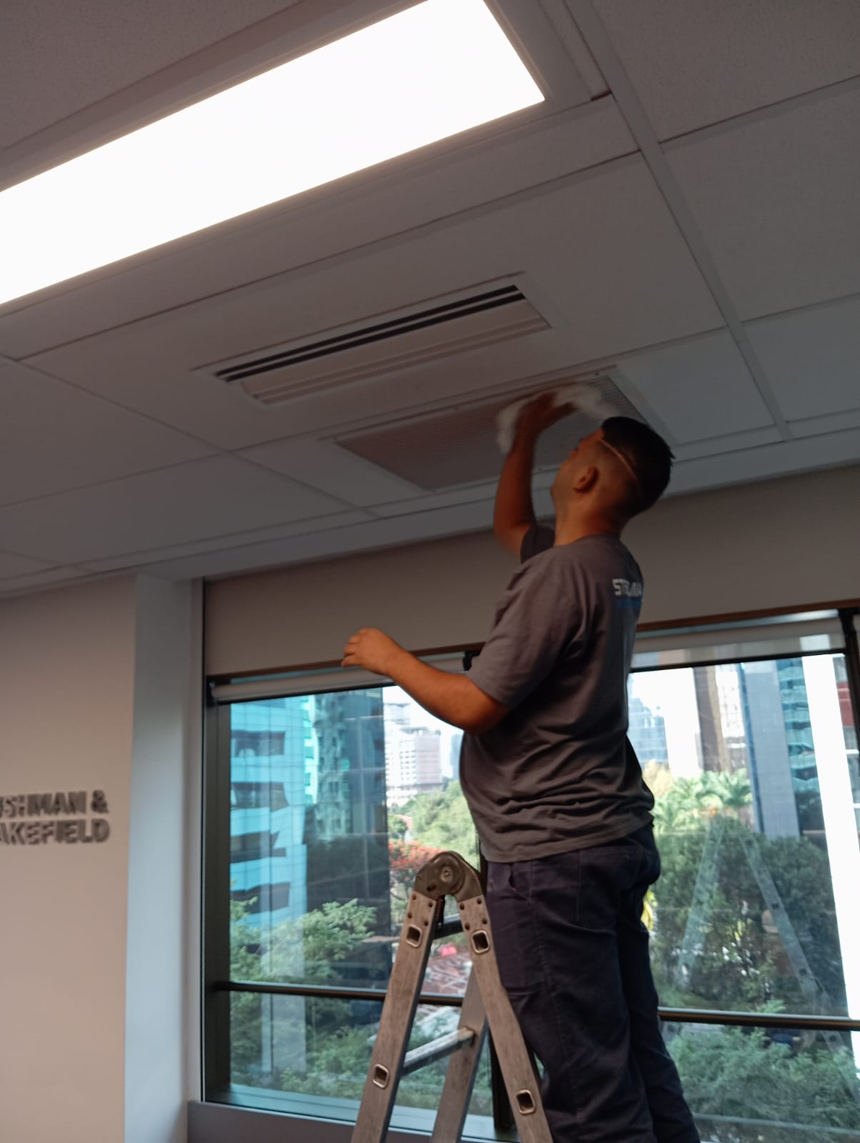 Recomenda-se realizar a limpeza dos dutos a cada 12 meses, ou com maior frequência em ambientes com alto fluxo de pessoas ou poeira.