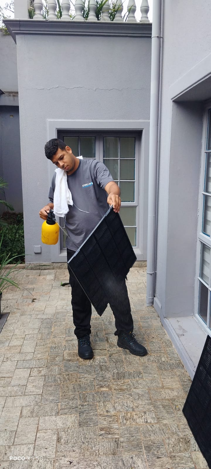 A limpeza é feita com equipamentos específicos que removem poeira, mofo e impurezas, melhorando a qualidade do ar e a saúde do ambiente.